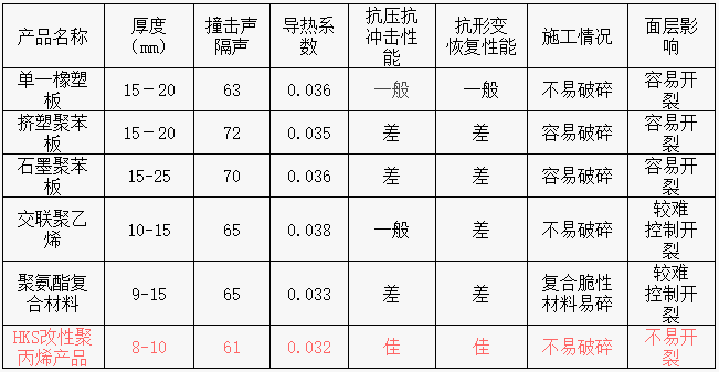 HKS改性聚丙烯保溫隔聲板與其他產(chǎn)品性能對比